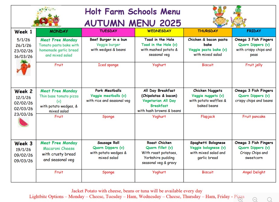 Our menu has been chosen to ensure that we provide a balanced nutritious meal daily.